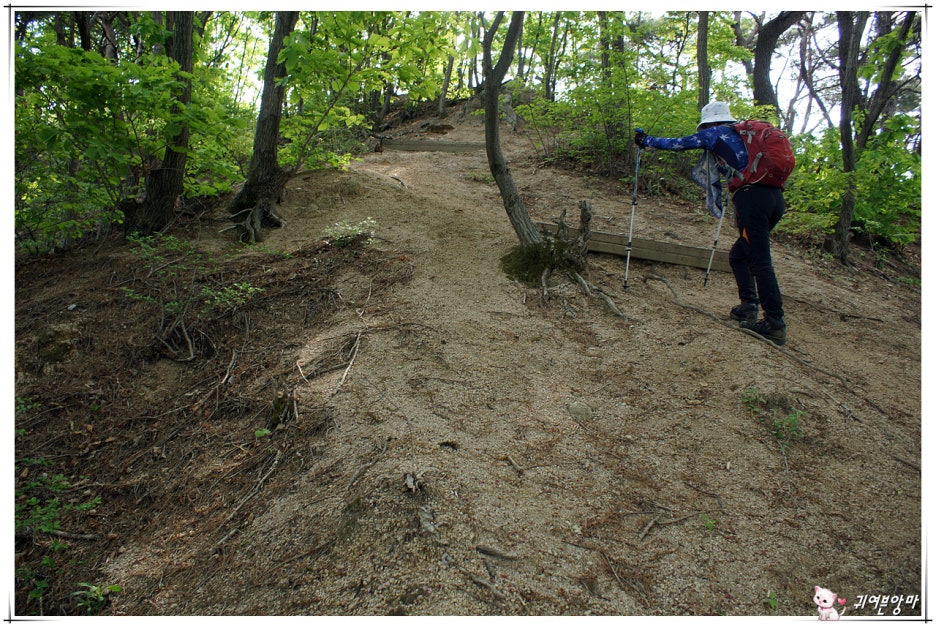 발 끝에 잔뜩 힘을주고서...미끄러운 마사토 오름길을 올라갔더니....