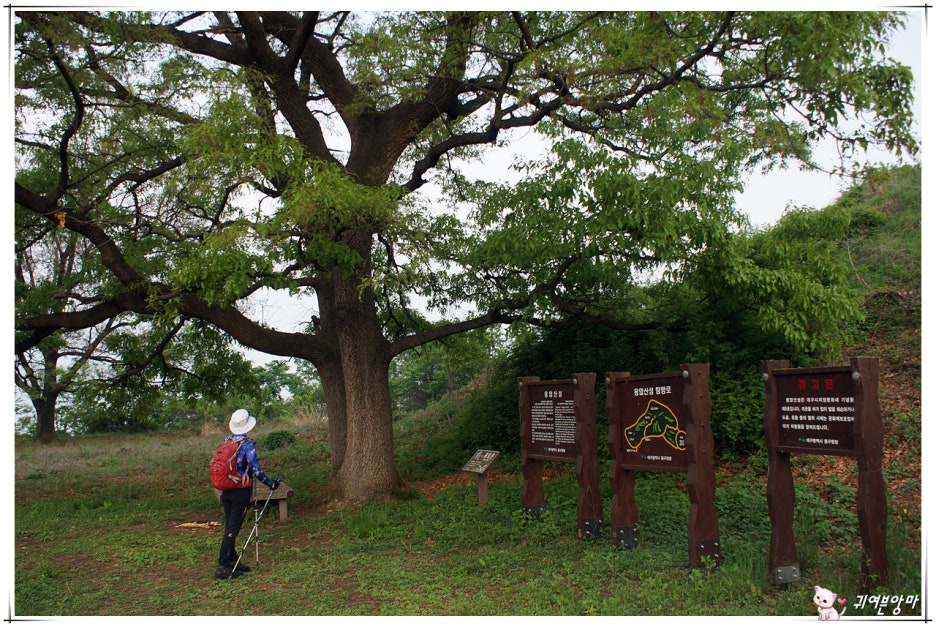 용암산성 안내문과 함께...커다란 나무 한그루가 반겨주네요.