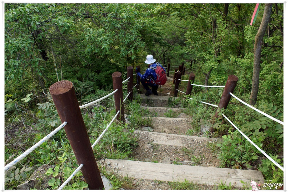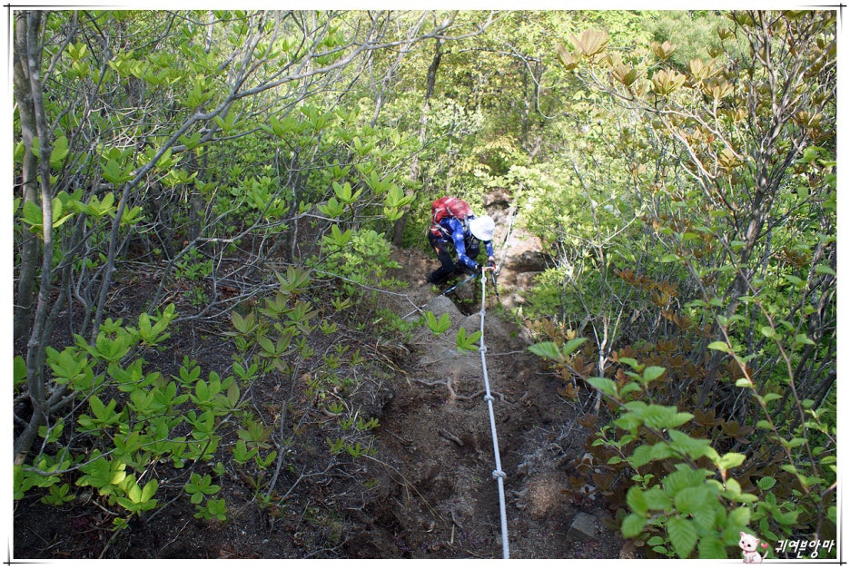긴 밧줄까지 늘어뜨려 놓은...아주 가파른 내림길을....^^
