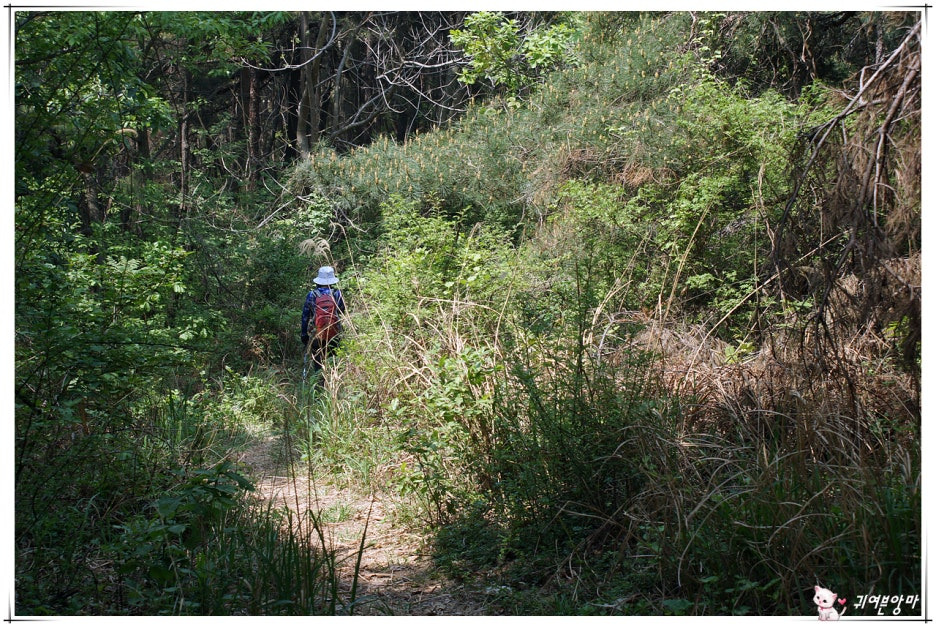 환성산 정상 약 100여m 아래쪽에서...우린 인산마을을 가르키는 방향으로 좁은 오솔길따라 내려갔습니다.