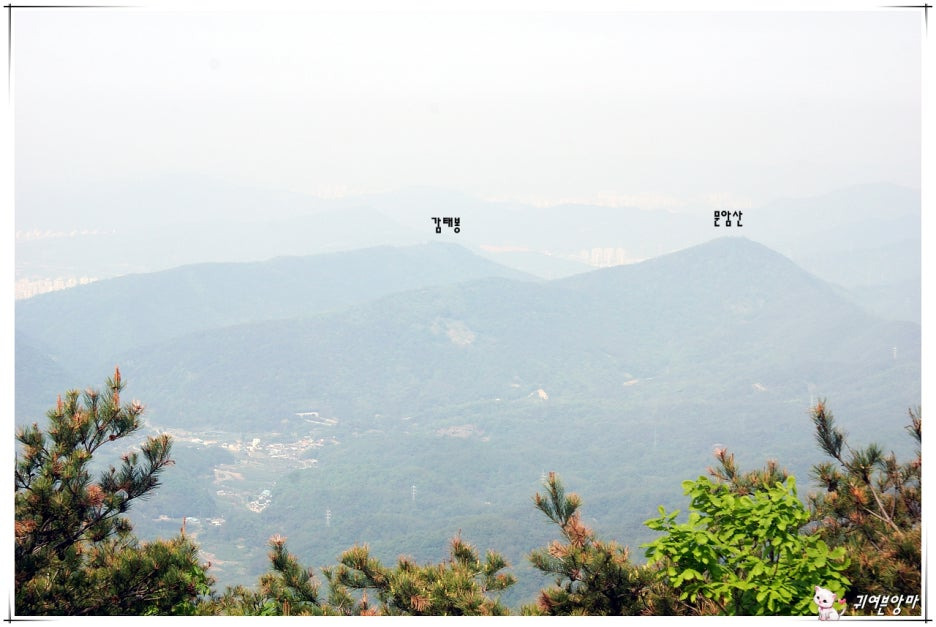 오른쪽으로는 오늘 마지막 봉우리인 문암산과...능선길까지만 올랐던 감태봉이 아주 흐릿하게 보입니다.