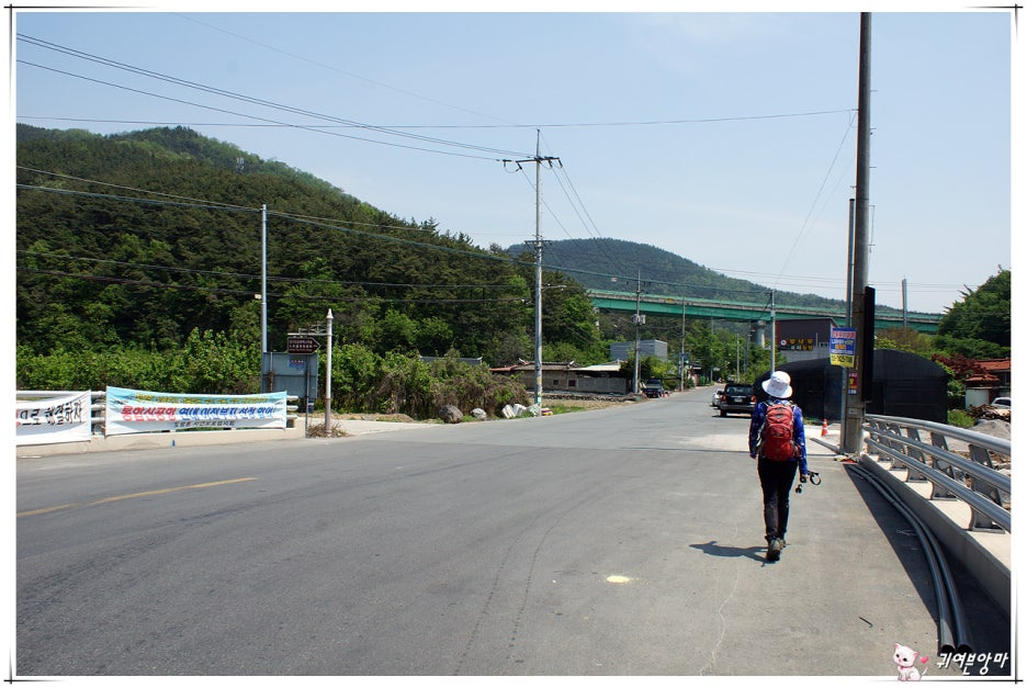 고속도로 아래를 지나서 왼쪽으로 돌아서니...저만치 산길 들머리가 보이네요.
